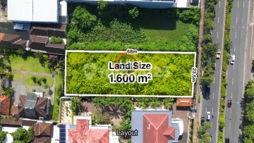 Luas tanah 1.600 m2 (16 are) Ukuran tanah 23.5m x 68m Hadap: timur laut Harga: 590 juta/tahun (min sewa 10 tahun)