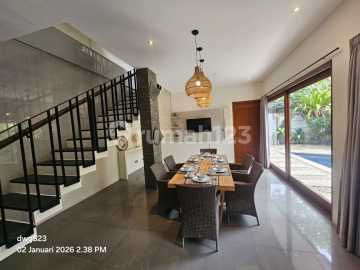 Villa for Sale in Canggu - Berawa Located in a prime area surrounded by villas, restaurants, and cafés. Only 3 minutes to Berawa Beach, Finns Beach Club, and Atlas. Property Details: 3-storey villa Land size: 221 m² (2.21 are) Building size: 480 m² 4 bedrooms 4 bathrooms Swimming pool Enclosed living room Dining area 1 guest toilet Storage room Staff room Electricity: 11,000 kWh Semi-furnished Rooftop on the 2nd floor with rice field view IMB (building permit) issued in 2020 Car garage Deep well water Balcony Road access: 5 meters wide Price: IDR 7.9 Billion Slightly negotiable CDWG