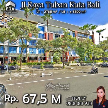 INFO LISTING - LJS HOTEL RESORT MODERN STRATEGIS DEKAT AIRPORT NGURAH RAI JL RAYA TUBAN KUTA BALI Alamat: Jl. Raya Tuban Kel. Tuban Kec. Kuta Bali Detail : - LB : 2765 m² - LT : ± 8500 m² Keunggulan Lokasi: - Lokasi Strategis Harga: Rp. 67,5 M (CASH ONLY) Harga BELUM Termasuk Pengosongan dan Balik Nama. (Harga di atas belum termasuk BPHTB 5%, biaya lelang 2%, PPN 1%, dan PBB jika ada) **Kenapa Memilih Kami?** Dengan pengalaman 12 tahun di bidang lelang, kami menyediakan solusi satu atap untuk semua transaksi properti Anda. Proses yang jelas dan bersih sehingga Anda bisa tenang hingga serah terima. Hubungi : - Holly: 081818xxxx - Ferry: 0816116xxxxHoteldijualBali #Bali #Kuta #SovereignHotelBali #Tuban