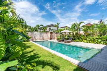 TUMBAK BAYUH 4BR FOR RENT: Luxurious 4-Bedroom Villa in Pererenan - Monthly, Annually, and Leasehold Options ✅ OVERVIEW : This is an exceptional opportunity to rent a luxurious 4-bedroom family villa located in the desirable area of Pererenan, Bali. The villa offers a blend of modern amenities and a tranquil environment, perfect for families or individuals seeking a high-end living experience. ✅ KEY FEATURES : - Leasehold Period: The leasehold is valid until April 30, 2049, providing long-term security and value. - Location: Situated in Tiying Tutul, Pererenan, a sought-after neighborhood known for its proximity to beaches, restaurants, and other attractions. ✅ PROPERTY DETAILS : - Land Size: 4.48 are (approximately 448 square meters) - Living Space: The villa features a spacious two-story layout with 267 m2 of living space. - Garden: A large, well-maintained garden surrounds the villa, providing ample space for outdoor activities and relaxation. - Swimming Pool: Enjoy a generously sized 50 m2 swimming pool, perfect for cooling off and entertaining guests. - Bedrooms: The villa boasts 4 well-appointed bedrooms, providing comfortable accommodation for the whole family. - Bathrooms: There are 4 bathrooms plus an additional guest toilet for convenience. - Furnishing: The villa is fully furnished with high-quality furniture and includes a fully equipped kitchen featuring BOSCH appliances. - Living Area: The enclosed living area is equipped with air conditioning to ensure comfort in all weather conditions. - Parking: A dedicated car park is available for residents. - Storage: A storage room provides extra space for belongings. - Staff Room: The villa includes a staff room, ideal for those who require additional help. - Design: Designed by a locally-based Italian designer, the villa showcases a beautiful earthy finish, blending seamlessly with the natural surroundings. The design emphasizes both aesthetics and functionality. - Family-Friendly: The large pool and grassy area provide a safe and fun environment for children to play and enjoy outdoor activities. ✅ PRICING OPTIONS : - Monthly: IDR 110,000,000 - Yearly (Upfront Payment): IDR 1200000xxxx