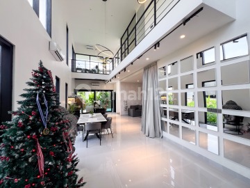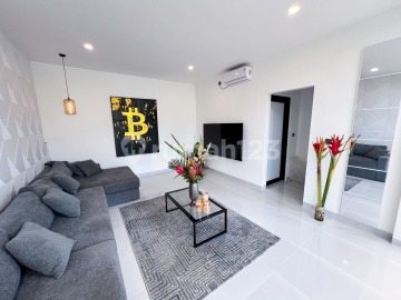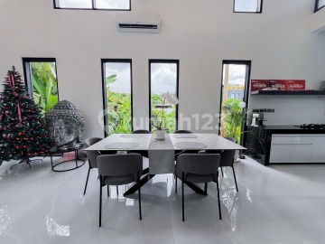 Set in the vibrant residential pocket of Tumbak Bayuh near Pererenan, this striking two-bedroom villa delivers a rare rooftop-focused lifestyle paired with dramatic nine-meter ceilings and skylights that flood the interiors with natural light. Surrounded by lush greenery and enjoying panoramic rice field views, the home offers a refreshing sense of openness while remaining just minutes from Pererenan Beach and Canggu's lifestyle hubs. It is held on LEASEHOLD for 23 years with the possibility of a 10-year extension.. The layout features open living, kitchen, and dining spaces flowing toward a 6 x 3 meter swimming pool, complemented by an office, storage room, and a fully equipped laundry area with water filtration and washing machine. Two terraces and an expansive rooftop-complete with a mini kitchen and grill-create multiple zones for entertaining, relaxing, or sunset gatherings above the neighborhood. Generous parking for cars and bikes, 7.7 kW electricity, and premium equipment elevate everyday comfort, including multiple large TVs, full kitchen appliances, six air conditioners, sound system, décor, and complete furnishings-allowing for immediate use or rental operation. With jungle padel clubs, Nuanu, and over thirty cafés within easy reach, this Tumbak Bayuh villa blends architectural character, walkable convenience, and rooftop living in one of Pererenan's most desirable emerging enclaves.