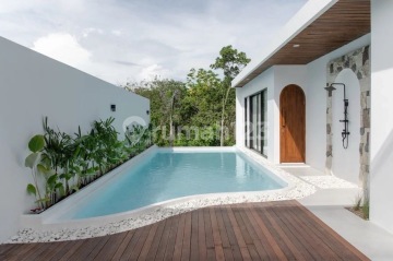 Discover a sanctuary of modern tranquility in the heart of fashionable Uluwatu. This brand new two-bedroom leasehold villa is perfectly positioned to offer the best of both worlds: breathtaking, uninterrupted green views and close proximity to Bali's most iconic coastal treasures. The villa is designed for seamless indoor-outdoor living, featuring a fully equipped kitchen that opens to the living space, creating an ideal setting for relaxed living and entertaining. Both spacious bedrooms are ensuite, providing privacy and comfort. Step outside to find your own slice of paradise. The property boasts a stunning outdoor pool, perfect for a refreshing dip while surrounded by nature. The expansive terrace invites you to unwind and take in the peaceful, green outlook-a perfect backdrop for morning coffee or evening sundowners. Location is key, and this villa delivers. You are just a 5-minute drive from the majestic Uluwatu Temple and the dramatic Uluwatu Cliffs. World-renowned surf and sunsets at Padang Padang Beach are a short 10-minute drive, while the trendy shores of Bingin Beach are easily accessible. This villa represents a rare opportunity to own a new, low-maintenance property in one of Bali's most sought-after destinations, perfect as a private retreat or a lucrative rental investment.