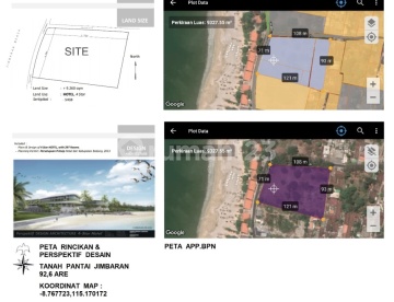 Dijual cepat tanah luas tepi pantai Jimbaran Luas tanah : 9260 m2 ( 92.6 are ) Lebar Depan : 71 mtr SHM Hadap Barat ITR Zona Pariwisata View Pantai Jimbaran Harga jual : Rp 1,3 Milyar /are / 100 m2 Untuk info lebih lanjut dapat menghubungi Dicky