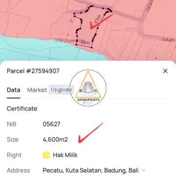 EXCITING LEASEHOLD CLIFF FRONT LAND AT NYANGNYANG BEACH, ULUWATU PECATU Location : Jl. BATU.manik, nearby Nyangnyang Beach, Pecatu, Kuta Selatan,.Bali Details ; - Land size : 46 Are - Cliff front size : 38 meters widith - Contour land is Flat - Road access is 6 meter widith - Red zona is Mix ( Yellow, Pink.and brown ), it's Possible to build anything commercial building - Legality SHM Price IDR 37 Million / are / are