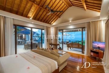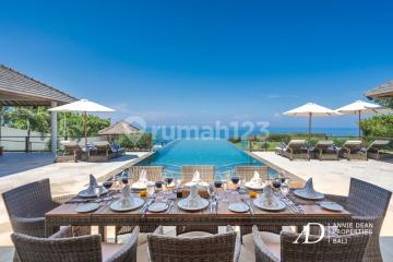 Ocean Views | Fully Furnished | Turnkey Ready | Well Managed Positioned inside a gated luxury estate in one of South Bali's most exclusive clifftop communities, this exceptional freehold villa offers sweeping Indian Ocean views and a refined tropical lifestyle. Surrounded by premium residences and minutes from iconic beaches, 5-star resorts, and world-class destinations such as Savaya Bali and Kuta Golf in Pecatu, this address delivers rare privacy, prestige, and long-term investment value. Set on 1,780 square meters of land with 500 square meters of building, the villa features five generous bedrooms with ensuite bathrooms, a spacious open-plan living and dining area, a fully enclosed modern kitchen, and a private media room with its own bathroom. Expansive sun terraces, landscaped gardens, and an ocean-facing infinity pool create a dramatic setting for relaxation or entertaining. Architecturally, the villa blends tropical Balinese warmth with elegant colonial touches. Vaulted ceilings with natural wood and rattan accents, polished stone floors, and wide glass panels create an airy yet sophisticated atmosphere. Custom furnishings, a chandelier-lit lounge, and premium finishes enhance the villa's timeless design, while the modern kitchen with black granite countertops and high-quality appliances ensures everyday functionality. Sold fully furnished and turnkey-ready, the villa is ideal for private residential living or high-yield luxury rentals within a well-managed estate. Its freehold title, clifftop position, ocean views, and premium surroundings secure strong long-term value in Bali's luxury property market. Year Built: 2015 Price: IDR 55,000,000,000.