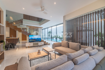 This newly constructed villa offers a prime location within Umalas. Conveniently situated near an array of amenities including restaurants, cafes, and supermarkets, it also provides easy access to Canggu International School, Fins Recreation Club, Atlas and Seminyak Beach. Spanning 477 square meters of land, this two-level villa features a contemporary design with spacious interiors totaling 740 square meters. This FREEHOLD villa boasts four bedrooms, each with an ensuite bathroom. The master bedroom includes a bath, complemented by three shower bathrooms, powder rooms, a cozy teak wood Nook lounge, and a sleek Metric open kitchen. The living and dining areas are elegantly furnished with handpicked pieces from Cellini, overlooking an 18-meter pool. Additional features include fully motorised blinds, curtains, and gates, a spacious two-car garage with open bike parking, ample storage space, a water filtration system, CCTV security, and a robust three-phase electricity supply of 16,500 watts.