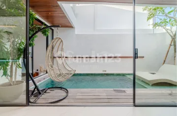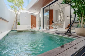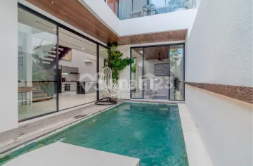 FOR LEASE 26 YEARS ( EXTENSION OPTION AVAILABLE ) Discover a rare opportunity to own a beautifully designed 2 bedroom villa in the peaceful and highly sought-after area of Umalas. Set within an exclusive complex of only 4 villas, this property offers privacy, comfort, and a refined tropical lifestyle just minutes from Canggu and Seminyak. Built across two floors, the villa features a spacious open-plan living and dining area on the ground level, seamlessly connected to a private pool and lush garden. The double-height ceiling enhances natural light and creates an airy, elegant atmosphere, while the fully equipped island kitchen comes with premium appliances and modern finishes-perfect for both daily living and entertaining. Upstairs, two well-appointed bedrooms provide a quiet retreat, designed with comfort and natural light in mind. Each villa includes 2.5 bathrooms, air conditioning, wardrobes, and thoughtfully curated interiors that reflect a boutique, hotel-style living experience. Additional features include parking, video surveillance, and high-quality construction throughout. Located in Umalas, a calm residential neighborhood favored by long-term residents and families, the area offers a peaceful environment without sacrificing convenience. Surrounded by popular cafes, restaurants, shops, and lifestyle destinations, this villa is ideal for both personal living and investment. A perfect balance between tranquility, design, and location-this is a property you don't come across twice.