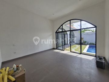 For Rent Brand New Villa in Bumbak Umalas Price: IDR 250 million/year For yearly rent only Details: Land size 200 sqm 2 bedrooms ensuites 1 guest toilet + Laundry room Spacious enclosed living and kitchen Pool 4 x 8 m Garden Unfurnished
