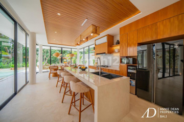 Modern Design | Cinema Room | Fully Furnished | Prime Location Located in the prestigious residential enclave of Umalas, this elegant freehold villa offers modern luxury living in one of Bali's most desirable neighbourhoods. The area is known for its peaceful surroundings, international schools, and quick access to both Canggu and Seminyak, making it ideal for families and long-term residents. Set on 579 square meters of land with 380 square meters of refined living space, the villa features four ensuite bedrooms, a grand entrance corridor, and enclosed living and dining areas overlooking the landscaped gardens. The contemporary kitchen is equipped with premium appliances and custom cabinetry, providing a functional and stylish space for daily living. Designed with a modern tropical aesthetic, the villa combines warm textures, ambient lighting, and seamless indoor-outdoor flow. Lifestyle amenities include a private cinema room, jacuzzi, powder room, koi pond, and a resort-style outdoor area featuring a private swimming pool, tropical greenery, and a sophisticated poolside bar. Completed in 2025 and offered fully furnished, this villa presents strong long-term value in a high-demand residential location. With premium features and timeless design, it is ideal for private living or premium rental investment. Price: IDR 19,000,000,000.