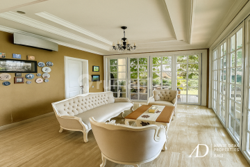 Timeless Design | Premium Residential Area | Spacious 1,000 sqm Build Nestled in the highly desirable residential neighbourhood of Umalas, this elegantly crafted European-style villa offers timeless design, generous living spaces, and exceptional comfort. Umalas is renowned for its peaceful streets, proximity to international schools, and fast access to both Canggu and Seminyak, making it one of Bali's most sought-after areas for families and long-term residents. Set on 725 square meters of land with an impressive 1,000 square meters of built area, the villa features four bedrooms, three bathrooms, and a guest toilet. The ground floor includes a grand entrance hall, an enclosed living room, an elegant dining area, and a fully equipped kitchen. Guest bedrooms open onto private terraces with serene garden and pool views, creating an inviting and comfortable atmosphere for family or visitors. The upper level offers a cozy lounge and office space, a luxurious master suite with a walk-in dressing room and spacious en-suite bathroom, and two interconnected children's bedrooms sharing a bathroom. All bedrooms come with private terraces overlooking the pool and landscaped gardens, enhancing privacy and relaxation. Designed for refined tropical living, the outdoor area features a large swimming pool, manicured gardens, and a shaded chill-out pavilion. Additional facilities include staff quarters, a laundry area, a storage room, a deep-well water source, a 16,500-watt electrical supply, and a two-car garage. Built in 2016. Price Options Freehold: IDR 28,500,000,000 Leasehold 30 Years: IDR 20,000,000,000.