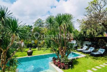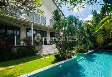 This stunning, expansive 4-bedroom luxury villa in Umalas is now available for yearly rental, offering an unparalleled standard of comfortable living. Set on 800 sqm (8 are) of lush land, this property is designed for grand living and entertaining. Enjoy the magnificent two-story open-concept living area with soaring ceilings, a fully equipped kitchen, and immediate access to the beautiful tropical garden and the 12 x 3m private pool. Size: 800 sqm Land / 380 sqm Building Layout: 4 Bedrooms / 4+1 Bathrooms, 2 Living Rooms, Dedicated Office/Working Area. Luxury Amenities: Sauna, Billiard Table, High-Speed Internet, TV/Netflix, and Parking for bikes. The rental price is all-inclusive for a truly comfortable and hassle-free stay in one of Bali's most desirable locations.