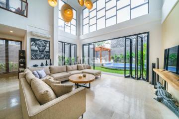 Dijual villa mewah Modern Tropis 2 Lantai Kerobokan Umalas Luas Tanah : 500 m² Luas Bangunan : 500m² Hadap : Utara Harga : IDR 15M FURNISHED Details : - 4 kamar tidur - 4 kamar mandi dalam - Perabot lengkap - Ruang tamu tertutup - Ruang rias - Dapur basah - Dapur kering - Kamar staf + kamar mandi - Ruang penyimpanan - Garasi - SHM - IMB - Jalan 7 meter paving one Gate System