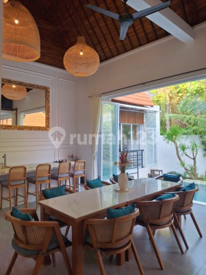 Villa for sale in Umalas Bumbak ● Freehold SHM Land 400 m2 ● Building size 210 m2 ● Building permit : Pbg/slf pondok wisata 2024 ● fully furnished ● 4 bedrooms with ensuite bathroom and AC, water heater ● Big living room, dining room, pantry with stove. AC, powder room. ● Outdoor dining area, bilyard table ● Pool 12 x 3 ● Storage room, linen room. ● Kitchen, gas stove + hood, electric oven. ● Reading room/mezzanine floor (attic room) ● Staff room with own toilet and kitchen. ● Garage for 2 cars. ● Well water + pump ● Electricity 7700. ● Wifi, CCTV (Hikvision) Price reduced to 9,2 Billion Negotiable
