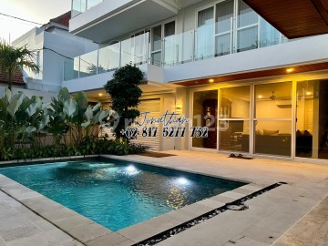 Dijual villa mewah modern brand new yang berlokasi di kawasan premium Umalas. Villa ini dirancang untuk kenyamanan maksimal dengan tata ruang luas, fasilitas lengkap, dan kualitas bangunan tinggi. Sangat ideal sebagai hunian eksklusif maupun properti investasi kelas atas. Villa memiliki area living ganda, fasilitas gym pribadi, serta area outdoor yang nyaman untuk bersantai maupun menjamu tamu. Spesifikasi Properti Luas tanah 300 m2 Luas bangunan sekitar 460 m2 Bangunan 3 lantai 5 kamar tidur utama ditambah 1 kamar tambahan 6 kamar mandi 2 area ruang keluarga Ruang makan outdoor dengan meja kayu jati 3 meter Dapur utama dan dapur pembantu Ruang laundry dengan mesin cuci dan pengering Full gym pribadi Hot tub Patio lantai 3 Kolam renang ukuran 4 x 7 meter Garasi tertutup untuk 2 mobil Workshop Semi furnished Fasilitas Teknis 11 unit AC hemat energi 3 kulkas Oven konveksi dan microwave Pintu dan jendela dilengkapi screen Daya listrik 16.500 watt Legalitas Sertifikat Hak Milik atau freehold Harga Sekitar Rp9,8 M Harga sebelumnya USD 700.000, turun menjadi USD 625.000