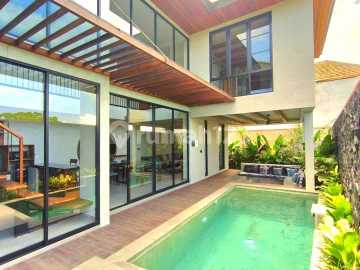 For Sale 2 units Brand New Villa Mediterranean Elegance Furnished in Ungasan Bali. Location : Jl. Pura Masuka Ungasan Introducing these two stunning villas, each with its own unique charm, Mediterranean Elegance and Modern Industrial. Situated in the rapidly developing Ungasan area, 6-minute drive to the bustling cafes or restaurants on Raya Uluwatu and 9 minutes to Karma Kandara. Details : . Land size 185 m2 and 191 m2 . Building area 200 m2 . 2 storey Buildings . 3 Bedrooms ensuite bathrooms . Facing West . Garden + Private Pool . Outdoor covered patio . Powder + Laundry room . Enclosed living . Storage + carport . PDAM + electricity 7.700 watt . Legalities SHM + SLF in progress . Road access 5 meter Selling Price IDR 4,9 Miliar Contact : Anya Bali Real Estate 0812xxxxxxxx