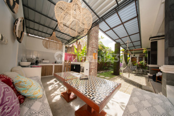 guest house with 4 rooms with private bathroom and patio, shared kitchen, garden and parking area. land size 300m2 building size : 4 bedroom (each 25m2) kitchen 12m2 shared patio 15m2 road access : residential area road, located at the end of the street with no through traffic parking fits for few motorbikes and 1 car property is currently fully furnished, yet furnitures can be removed if needed. renovation and structural modification are allowed, subleasing is allowed.