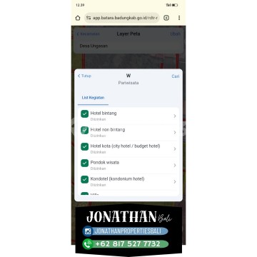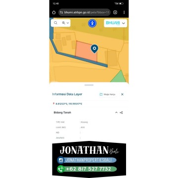 Dijual / Freehold: Tanah 8 Are – Jl. Balangan I, Pantai Balangan, Ungasan, Bali Luas Tanah: 8 Are (800 m²) Dimensi: 35 m x 23 m Zona / ITR: Pariwisata Kondisi Tanah: Permukaan lebih rendah dari jalan, perlu diurug 1–2 meter Akses Jalan: 5 meter paving Lingkungan: Perumahan / Villa Status: SHM / Freehold Akses Fasilitas: Air PDAM: Tersedia Listrik: Tersedia Telepon / Internet: Tersedia Cocok untuk pembangunan rumah atau villa pribadi Harga: IDR 500.000.xxx per are (nego)