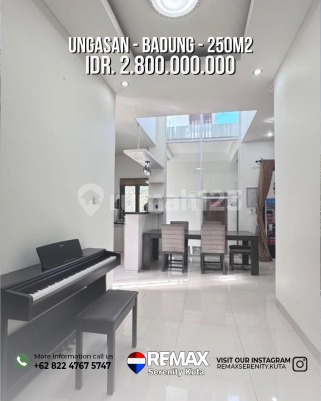 Spesifikasi Properti: - Luas Tanah: 176 m² - Luas Bangunan: 250 m² - Kamar Tidur: 3 kamar utama + 1 kamar pembantu - Kamar Mandi: 4 - Gudang: 2 ruang penyimpanan - Garasi: 2 (1 di lantai atas, 1 di basement) - Ruang Tambahan: - Studio make-up - Ruang kantor - Gym (lengkap dengan treadmill & bench press) - Fasilitas Hiburan & Kenyamanan: - Kolam jacuzzi outdoor di lantai 2 - 1 set piano - Sofa Ashley & kasur King Koil - Dapur: Kitchen set lengkap dengan kulkas Electrolux - Pendingin Udara: 6 unit AC - Listrik: 5500 watt - Air: PDAM + tandon air - Legalitas: Sertifikat Hak Milik (SHM) + IMB lengkap - Kondisi: Full furnish, siap huni Lokasi Strategis: - 5 menit ke Pantai Melasti - 6 menit ke Pantai Pandawa - View langsung Patung GWK - Dekat ke Ithon Supermarket, Pepito, Indomaret, dan Alfamart Harga: Rp 2,8 Miliar (nego)