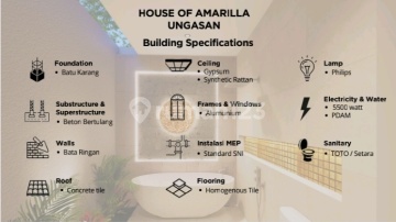 For Sale *House of Amarilla* A Warm Tropical Villa-Style Private Home in Ungasan Location: Kutuh, Ungasan, Kuta Selatan, Badung, Bali Price: -Unfurnished IDR 268000xxxxFully Furnished + 3000xxxx Specification: Land area each: 150m² Building area: 110m² 2 bedrooms 3 bathrooms Private living room Private kitchen Private swimming pool Electricity each: 5500 watt PDAM water Road width 6 meter Certificate ready IMB is in process Perfect Location: 11 minutes to Gunung Payung Beach 12 minutes to Pandawa Beach 16 minutes to the Uluwatu highway 14 minutes to GWK Festival Park 14 minutes to Sidewalk Jimbaran 13 minutes to Surya Husada Hospital Quiet neighborhood with easy access to the main road and essentials.