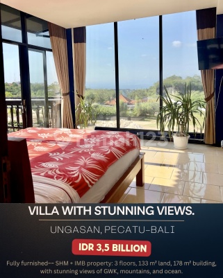 For Sale: Villa in Ungasan, Pecatu Area Views: Triple views of GWK Statue, ocean, and mountain Location: Nice area, combining comfort and convenience Title: Freehold / Hak Milik Building Permit: IMB 2017 Price: IDR 3.3 Billion Fully Furnished ( price reduce from 3,5 Billion) Price: IDR 3 Billion Non Furnished Property Details: Land Size :133 m² Building Size : 178 m² 3 floors with a spacious balcony Bedrooms : 3 Bathrooms : 3 Swimming Pool Indoor, 10 x 2.5 m 2 Kitchen Fully equipped Living Room : Generous space Dining Room Garage ( Car + motorbikes) Electricity : 3,700 VA Proximity to Key Destinations : 4 mins to Nirmala Supermarket 10 mins to Melasti and Pandawa Beaches 13 mins to Asian Intercultural School 15 mins to Sundays Beach Club 30 mins to Ngurah Rai Airport Contact For details or viewing, reach SPIROBALI REAL ESTATE