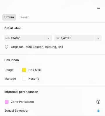 Land Leasehold 14 are in Melasti South Kuta Details: Tourism zone Land size 1.420 m2 (splittable) Can take minimum 5 are The land is flat and ready to build 700 mtr to Karma Kandara and the Beach Price IDR 18 million /are /year Leasehold for 25 years plus extend For further info please contact Wa.me/62821xxxxxxxx Emilia