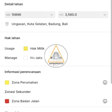 Leasehold land location of jalan Pura Masuka Ungasan - Bali • Land area 25 are (2.500 m²) • Front width 51 meter • 4 SHM • ITR Yellow zona • High soil contours • Ocean view • 6 meter road access Vate to Build Commercial Complex Villas, Guest Houses/ Homestay, Residential, Restaurant, Gym etc. Price : IDR 20 million / are / year 25 - Year contract period (Possible to Extend)
