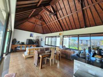 Sale Price: IDR 750000xxxxNegotiable) This impressive and spacious estate, Villa Minime, is a rare Freehold (SHM) offering in the highly desirable Ungasan area. It features a stunning traditional Balinese roofline over the main living area and offers expansive outdoor living and parking. The property is perfectly situated to capture beautiful Rooftop Ocean Views and panoramic vistas from the main living area and bedrooms. Size: 450 sqm Land / 380 sqm Building Layout: A massive total of 5 Guest Bedrooms (3 main + 2 pavilion) and 2 Staff Bedrooms, plus 4 Bathrooms and 1 separate Toilet. Amenities: Large Swimming Pool, Covered Garage for 3 cars, and strong 7700 Watt Electricity capacity (with both Well Water and PDAM supply). Location: Superb proximity to top beaches: 5 mins to Melasti, 10 mins to Pandawa, 15 mins to Bingin/Uluwatu, and 30 mins to the Airport. Ideal for a grand private residence, a luxury boutique rental business, or a large family compound.