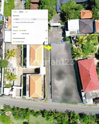 Main road frontage - Flat contour - Ocean exposure at 10-12 m elevation Positioned on the main access road to Ungasan Beach, this land offers a highly attractive opportunity for residential or villa development. Sitting on a hook corner with a flat topography, it allows effortless build planning and efficient site layout. From approximately 2.5 storeys (10-12 m), the land opens toward Bali's oceanline - ideal for villas designed with elevated viewing terraces. Utilities are already available, surrounded by established residential and villa properties. With its size and shape, this land is also excellent for subdivision, offering flexibility for multi-villa concepts or multiple private lots. Property Details Land Size: 440 m² Title: Freehold (SHM) Zoning: Residential (ITR Pemukiman) Located within villa & residential district Water & electricity available Suitable for multiple-plot division Price IDR 78800000xxxx m² - Negotiable