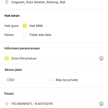 TANAH DIJUAL LOKASI UNGASAN LINGKUNGAN KAWASAN VILLA MEWAH Tanah dengan lokasi strategis di Ungasan dekat dengan Pantai Melasti dan Kawasan Pecatu indah resort * Luas tanah : 200 m² / 2 Are * Lebar depan : 23 Meter * Posisi hook dan di pojok * Akses jalan 5 Meter * Hadap timur dan utara * RDTR Zona kuning (Perumahan) * Terdiri dari 3 SHM (1 Owner) : Luas 80 m² / Luas 60 m² / Luas 60 m² * Hanya 5 menit berkendara menuju Pantai Melasti Harga : Rp.550Jt / are / 100 m²