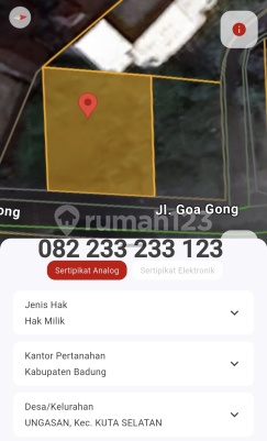 Properti unk Pembeli Langsung DIJUAL TANAH SUPER STRATEGIS - Jl. Utama Goagong, Ungasan Peluang emas memiliki tanah di kawasan yang berkembang sangat pesat, dengan akses utama yang memudahkan menuju berbagai pantai populer serta pusat pariwisata Ungasan Why This Land Lokasi premium di jalan utama Kawasan ramai berkembang - nilai investasi terus naik Akses sangat mudah Dekat pantai, area wisata, dan fasilitas lengkap Detail Spesifikasi: Luas Tanah: 250 m² Dimensi Ideal: 17 x 19 meter Akses Jalan Utama Orientasi: Timur (cahaya pagi yang nyaman & sirkulasi udara optimal) Legalitas: SHM - Aman & siap proses Izin Tata Ruang: Zona Perumahan Harga Jual: 500 Juta / Are Sangat ideal untuk pembangunan rumah pribadi, villa komersial, atau investasi jangka panjang. Segera hubungi sekarang untuk jadwal survey dan penawaran terbaik