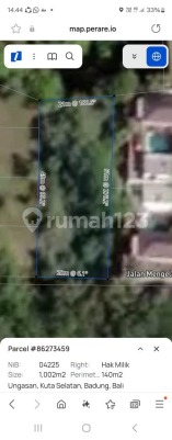 Dijual Tanah 10 Are - Ungasan Kuta Selatan Bali - Luas Tanah: 1.000 m² (10 are) - Zona: Kuning (Perumahan) - Sertifikat: SHM (Hak Milik) - Lingkungan villa mewah - Cocok untuk bangun villa atau investasi jangka panjang - Akses jalan mobil ± 3,5 meter - Area tenang dan berkembang Harga Rp. 620 Juta/Are/100m2 Atau Harga Global Rp 6,2 Miliar (00BYG)nm
