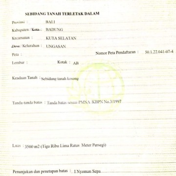 *Dijual Tanah lokasi Jalan Utama Toyaning 2 Ungasan / Badung - Bali* _Lokasi paling dicari dan diminati oleh investor untuk area Ungasan_ - Luas tanah : 35 Are / 3.500 m² - Lebar depan : 34 Meter - Kontur tanah datar siap bangun - Hadap utara - ITR Zona Perumahan (Kuning) - Jaringan PLN, PDAM, Wifi ada - SHM - Sangat cocok untuk dibangun komplek villa / PADEL / Restaurant / dll. Harga : Rp 850Jt / Are / 100 m² Negotiable.