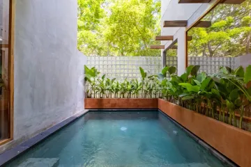 Luas tanah: 100m2 Luas bangunan: 140m2 Kamar tidur: 2 Kamar mandi: 2 Kolam renang pribadi Kapasitas listrik: 5500Watt Akses air: PDAM Harga termasuk: SHM SLF Furnitur Harga belum termasuk: Pajak Biaya notaris