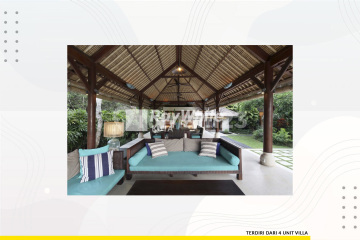 -AJAA<br /> Lokasi: Seseh<br /> Walking distance to beach<br /><br />Details:<br />- SHM & IMB <br />- Luas tanah : 2.210 m2<br />- Bangunan: +- 900 m2<br />- Terdiri dari 4 unit villa<br />- 2 x 1 bedroom villa, 1 x 2 bedrooms villa, 1 x 3 bedroom villa<br />- Total 7 kamar tidur suites<br />- Setiap villa memiliki Kolam renang<br />- Main Kitchen<br />- Staff area<br />- Garden<br />- Parkir 4 - 5 mobil<br />.<br />Harga: Rp 21.000.000.xxx,-