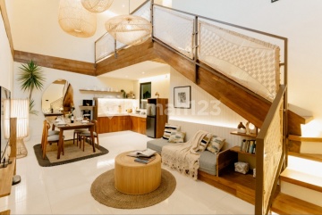 Mediterranean Villa For Yearly Rent / Leasehold until. 01 Juni 2048 Price : IDR 350 million/ year Leasehold : IDR 3 billion Land Size:100 sqm Building size : 125 sqm 2 storeys 2 Bedrooms 2 Bathrooms Livingroom Diningroom Kitchen Full Furnished Swimming pool 3x6 m Terrace Carport : 1 car Electricity: 5.500 watt Water : wellwater Road Access : 4 m