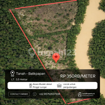 PENAWARAN LAHAN PROPERTI, KOMERSIAL & INVESTASI (STRATEGIS!) Lokasi: Kariangau, Balikpapan Barat Kota Balikpapan, Kalimantan Timur (Kawasan Industri & Pergudangan Masa Depan) Spesifikasi Lahan: Luas Lahan: ± 35.000 m² (3,5 Hektar) Legalitas: Sertifikat Hak Milik (SHM) - Clean & Clear (Sertifikat Lama) Aksesibilitas: Dekat pinggir sungai (Akses jalan kapal) Lebar Jalan Sungai: +/- 50 Meter Indikasi Penggunaan Terbaik (HBU): Cocok untuk Pergudangan & Logistik Potensi Pelabuhan / Dermaga Pribadi Pembangunan Cottage atau Bungalow Eksklusif Usaha Tambak / Empang Skala Besar Akses & Lingkungan: Akses darat dari Kampung Baru Ujung Area Lahan Kariangau dapat ditempuh ±45 menit menggunakan kapal klotok Lokasi berada di kawasan berkembang yang sangat prospektif dekat IKN Lingkungan tenang dan sangat mendukung untuk area industri maupun wisata air Harga: Rp 350.000 / m² (Investasi Sangat Menguntungkan) Info & Survey: 0899727xxxx ******** Kode Listing: BPN-B29