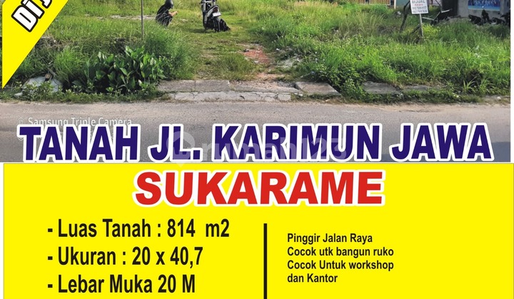 dijual cepat tanah di pinggir jalan sukarame, karimun jawa luas tanah 814 m2 ukuran 20 x 40,7 m kawasan bisnis cocok untuk bangun ruko, kantor dll sertipikat hak milik Harga Rp. 4 JT/m2 nego Hub Global Properti Lampung Up. Rama 0812 72 888 157 0823 7960 7xxx