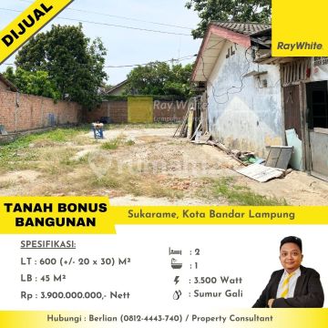 Dijual Tanah Bonus Bangunan berlokasi di Sukarame, Kota Bandar Lampung Lt : 600 (20 x 30) M Lb : 45 M Harga Jual Rp. 3,9 Milyar,- Nett Untuk info lebih lanjut silahkan hubungi nomor dibawah ini Berlian 0812444xxxx