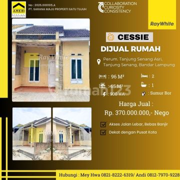 Dijual 1 Unit Rumah berlokasi di dalam Perumahan daerah Tanjung Senang. Luas tanah 96m2 Luas Bangunan 45m2 Lokasi strategis dan bebas banjir. Info Hubungi: Meyhwa 08218222xxxx