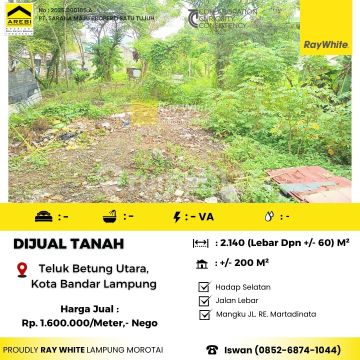 Dijual Tanah lokasi sukamaju teluk betung barat bandar lampung Luas Tanah 2.140 m2 ( Lebar muka kurang lebih 60 m2) Terletak dikawasan jalan utama R.E Martadinata Jalur strategis arah teluk betung barat Akses jalan lebar cocok untuk bisnis distribusi, pergudangan atau usaha komersial Dekat dengan SPBU , Restoran, Sekolah dan Perumahan padat penduduk Tanah bisa dimanfaatkan untuk restoran, minimarket, gudang ataupun fasilitas komersial campuran Land Title SHGB Valid until 24 Sept 2026 Info lanjut hubungi langsung Iswan