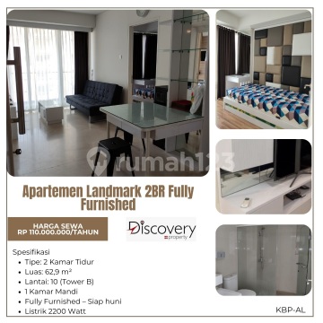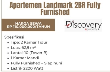 Di sewakan Aparatemen landmark residence 2 Br lantai 10 tiper kamar 2 luas 62.9 m2 Tower B 1 kamar mandi full furnished siap Huni listrik 2.200 watt untuk info lainnya bisa wa