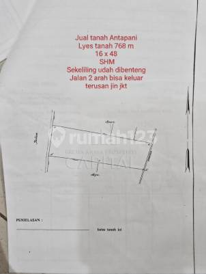 Jual tanah Antapani Luas tanah 768 m 16 x 48 SHM Sekeliling udah dibenteng Jalan 2 arah bisa keluar terusan jln jkt Nego ➡️ 5,2 M Memei Capital 0851xxxxxxxx