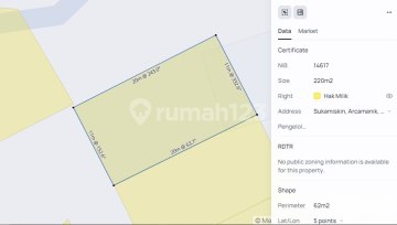 Tanah Kavling Siap Bangun Arcamanik bandung dekat griya Spesifikasi : > Luas Tanah : 220 m2 > Bentuk Tanah : Kotak > Lebar Muka : 11 m > Panjang tanah : 20 m > Orientasi Hadap : Barat Laut > Row Jalan : 2 Mobil > Legalitas : SHM > Harga Permintaan : 4,25 jt/m2