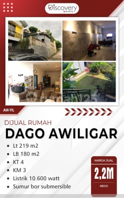 Dago Awiligar Bandung utara Luas Tanah : 219 Luas Bangunan : 180 Kamar Tidur : 4 Kamar Mandi : 3 Listrik 10.600 Sumur bor submersible Open Price : 2,2Miliar