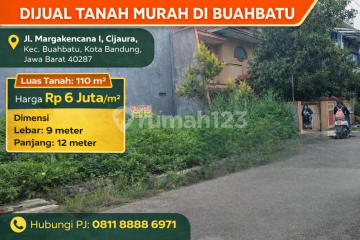 Dijual cepat sebidang tanah dengan posisi strategis di area favorit Buahbatu. Lokasi sangat potensial, cocok untuk: Membangun rumah tinggal Usaha properti (kos/kontrakan) Investasi masa depan Spesifikasi singkat: Luas tanah: 110 m² Dimensi ideal: 9 x 12 meter Sertifikat: SHM Fasilitas sekitar: Dekat Toll Buahbatu Dekat rumah sakit Dekat taman kota Dekat pusat perbelanjaan Pilihan sangat tepat bagi Anda yang mencari tanah di lokasi matang dan berkembang. :fire: Segera amankan sebelum terjual! Hubungi PJ 0811xxxxxxxx