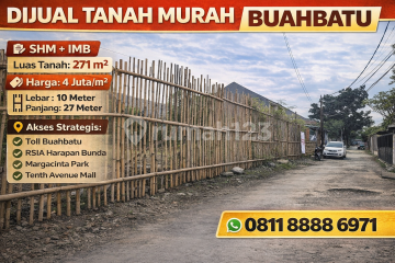 Tersedia tanah matang dengan posisi strategis di area Buahbatu Bandung. Lingkungan tertata rapi dan mudah diakses dari berbagai arah. Spesifikasi Utama: Luas : 271 m² Dimensi : Lebar 10 meter, Panjang 27 meter Legalitas : SHM + IMB lengkap Harga jual : Rp 4 juta / m² Keunggulan Akses: Sangat dekat ke Toll Buahbatu Dekat RSIA Harapan Bunda Dekat Margacinta Park Dekat Tenth Avenue Mall Cocok untuk pembangunan rumah modern, ruko, maupun investasi properti bernilai tinggi. Silakan hubungi PJ: 0811xxxxxxxx untuk informasi ketersediaan dan penawaran terbaik.