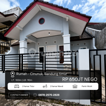 DIJUAL RUMAH SIAP HUNI - PERMATA BIRU, CINUNUK, BANDUNG Lokasi: Komplek Permata Biru, Cinunuk Bandung Timur (Akses Strategis) Spesifikasi Properti: Luas Tanah: 100 m² Luas Bangunan: 90 m² Kamar Tidur: 2 Kamar Mandi: 2 Lebar Muka (LM): 8 Meter Hadap: Selatan Legalitas: SHM (Sertifikat Hak Milik) & IMB Lengkap Listrik: 1.300 Watt Air: Jetpump (Jernih & Melimpah) Fasilitas: Carport Area Lingkungan Sudah Terbentuk Keunggulan Lokasi: Aksesibilitas: Hanya ± 600 meter menuju jalan besar. Lingkungan: Kawasan mandiri yang dekat dengan pusat perbelanjaan, pendidikan, dan kuliner di Bandung Timur. Bangunan: Tata ruang efisien dengan luas bangunan yang hampir maksimal di atas tanah 100 m². Harga: Rp 650.000.xxx Info & Survey: 0812xxxxxxxx Kode Listing: BDG-6P1