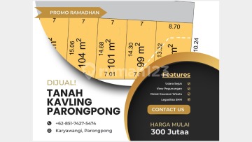 Rasakan suasana sejuk Parongpong dengan kavling premium harga mulai 300 jutaan. Lokasi strategis dekat Lembang Park Zoo, Dusun Bambu, dan Curug Pelangi, menjadikannya pilihan tepat untuk hunian nyaman, villa keluarga, atau homestay dengan potensi sewa tinggi. Legalitas aman SHM, lingkungan eksklusif, dan akses mudah ke Kota Bandung via Tol Pasteur. Investasi properti yang terus naik nilainya! Survey lokasi sekarang dan amankan unit terbatas! Hubungi langsung via WhatsApp: 0851xxxxxxxx