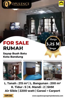 Dijual Murah Rumah di Suryalaya sayap Buah Batu lt.215 lb.200 kt. 5 km. 2 dapur bersih & dapur kotor garasi & carport Taman depan, tengah & belakang Listrik 2200 pascabayar Air sumersible, pdam tinggal pasang meter Toren atas bawah masing² 1000 l Diatas ada 1 kamar, ruang jemur & gudang SHM Penawaran 3,25M nego #buahbatu #bubat #buah batu #suryalaya #buahbatu OPI 08