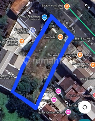 Dijual Tanah: jl. Buah Batu (Mainroad) Buah Batu, Kota Bandung Luas Tanah : 2942 m² Lebar Muka : 25m Kontur Datar Hadap Timur Laut Selling Point: - Sebrang Ada Marugame Udon, Starbucks, Mcd, JCo - Area Ramai - Bisa dibuat Hotel, Rumah Sakit, Gedung, Dll SHM Harga 30jt/m Nego rxs